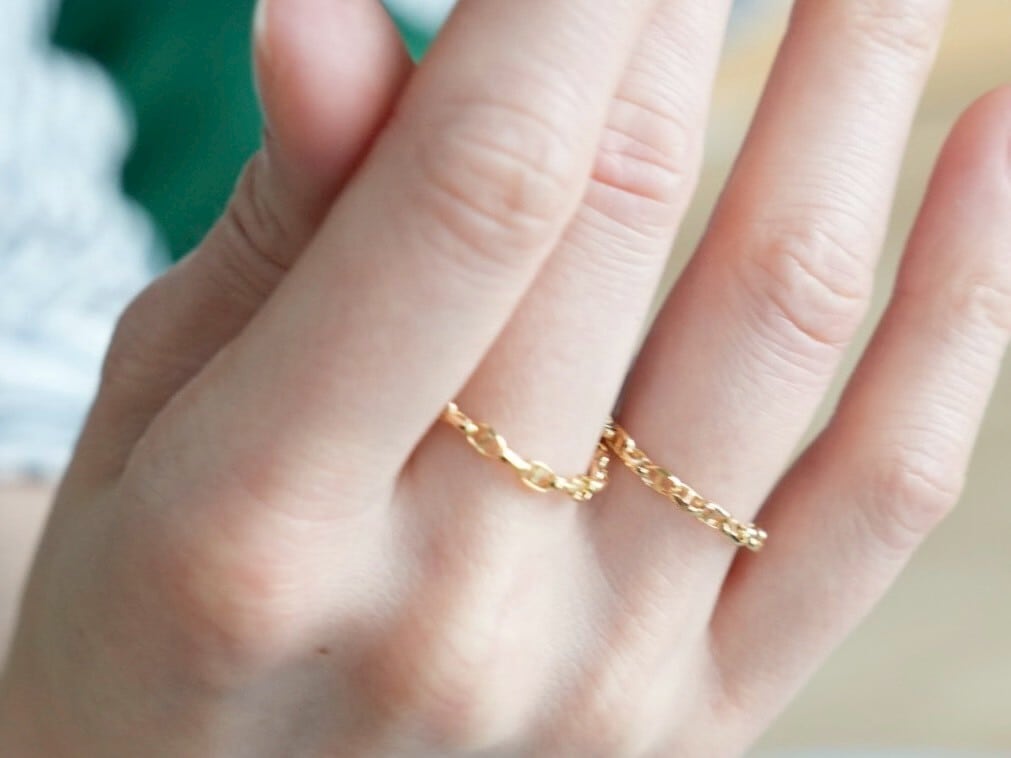 シェーヌの10号を薬指、14号を中指にはめています。