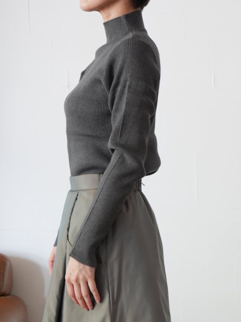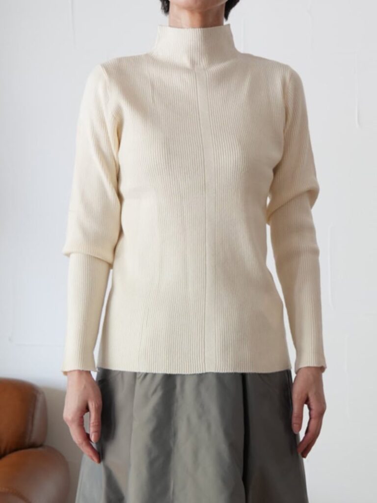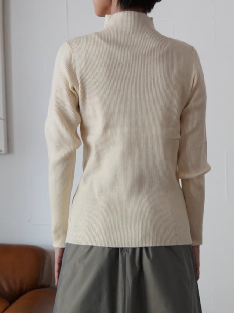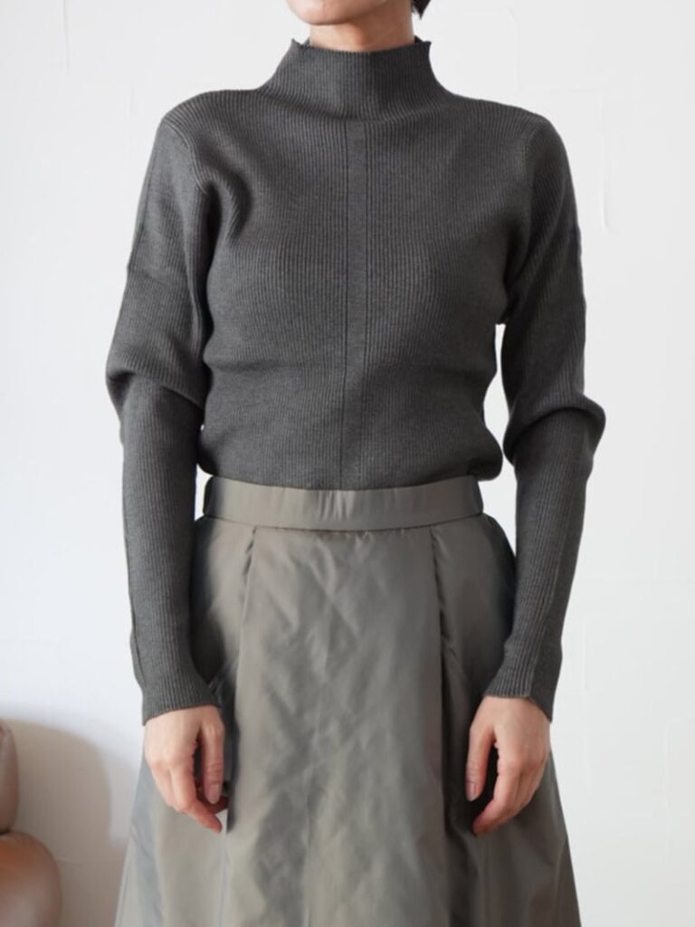 定番人気のボトルネックリブニットトップス。