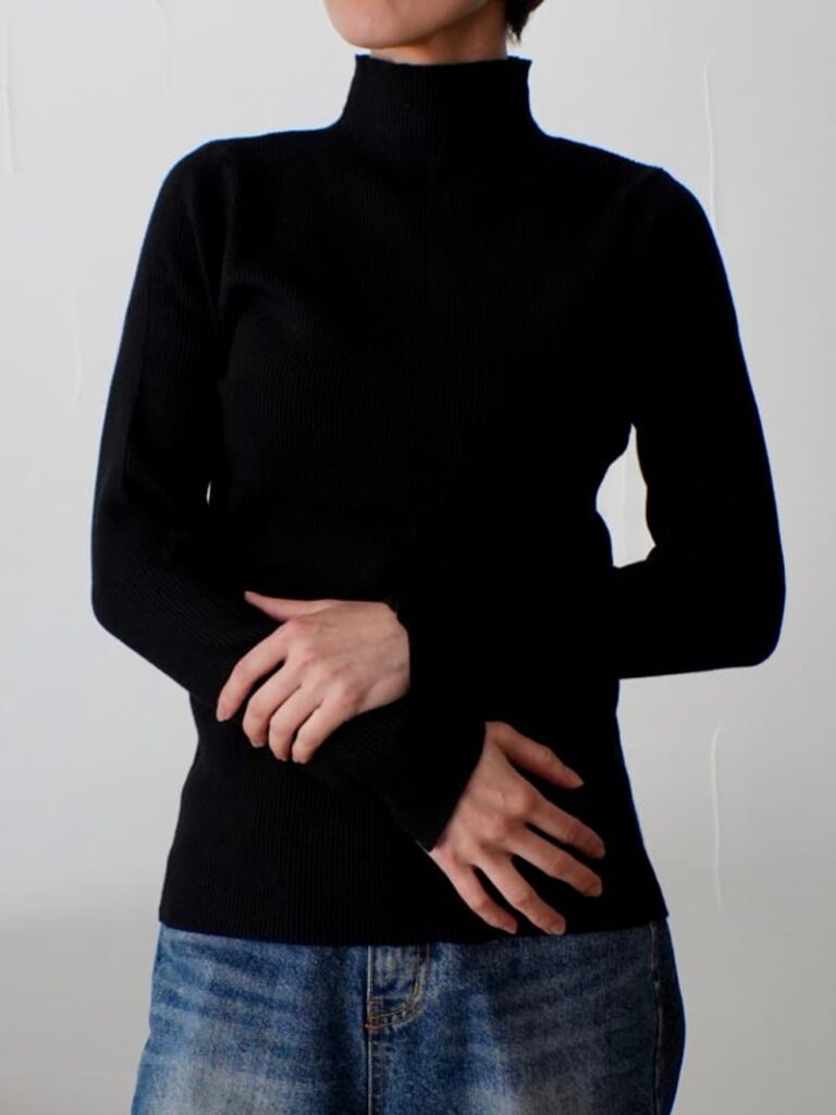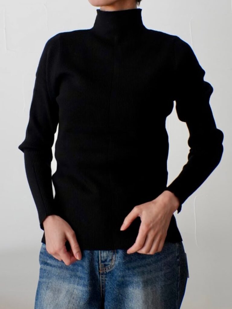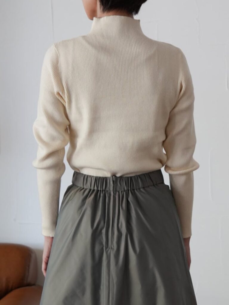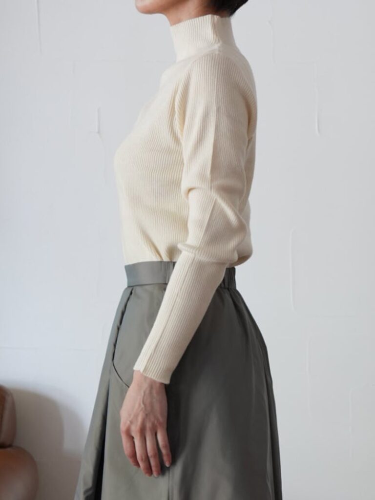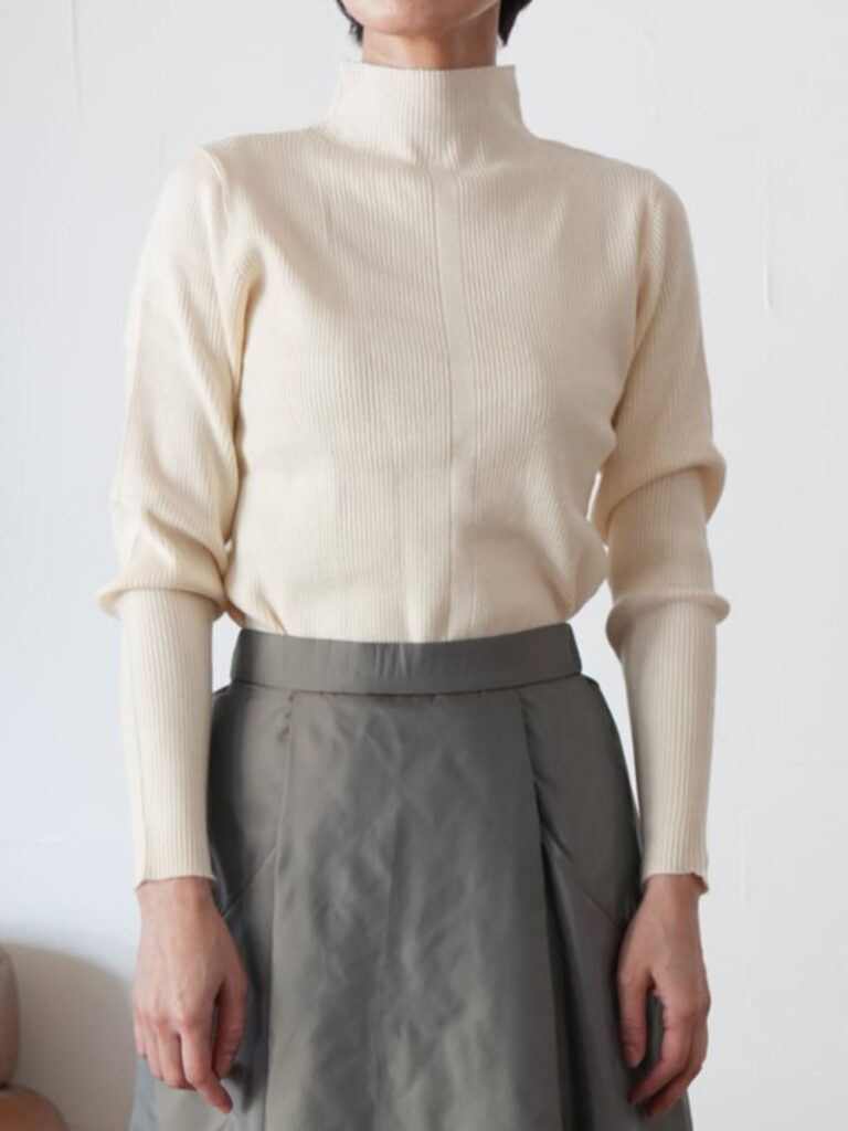 定番人気のボトルネックリブニットトップス。
