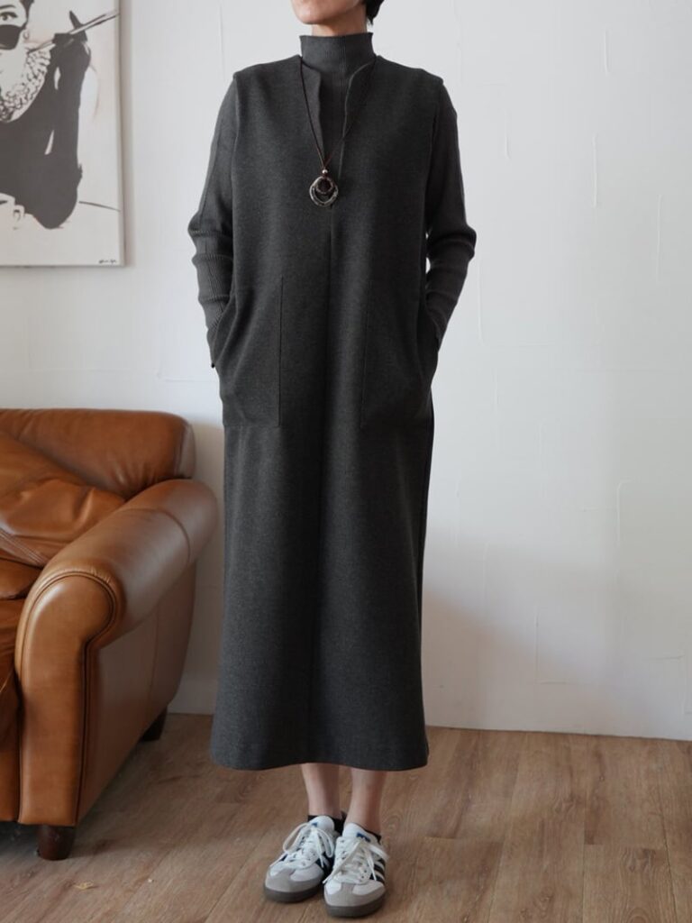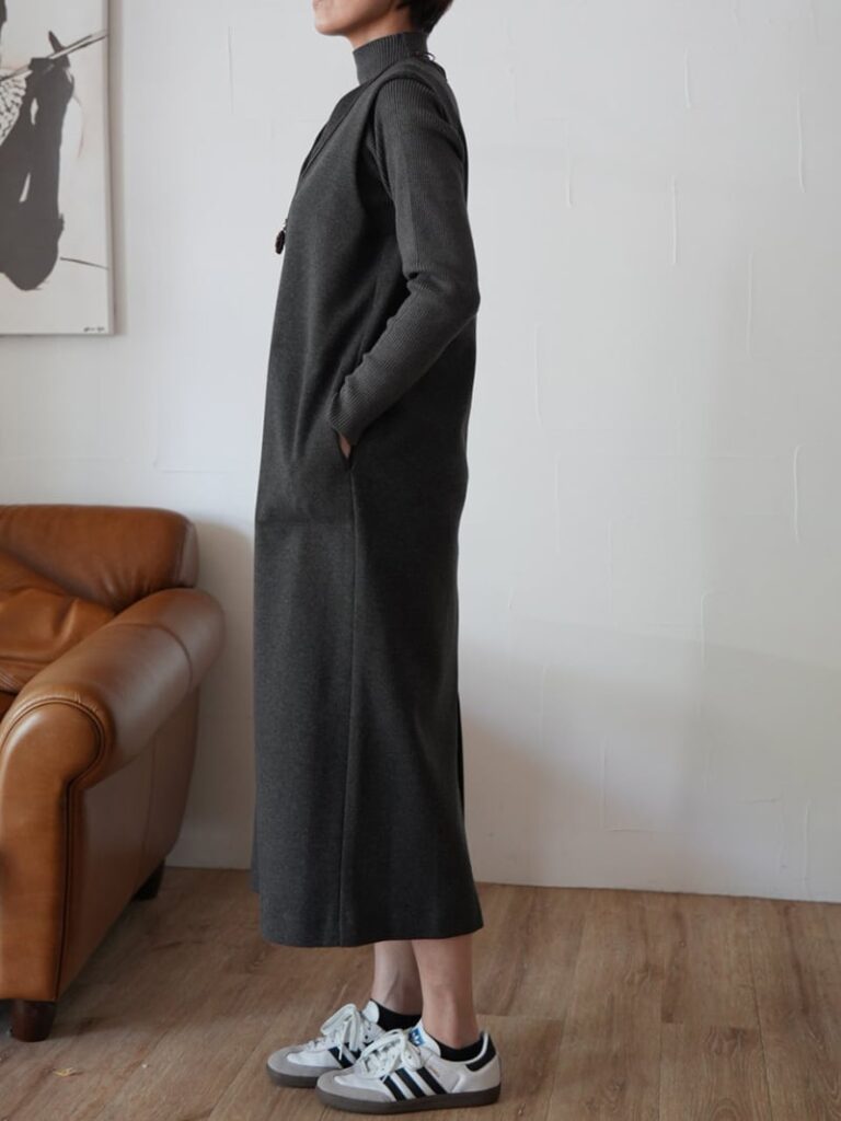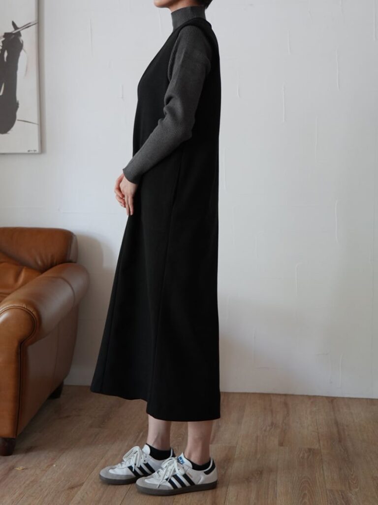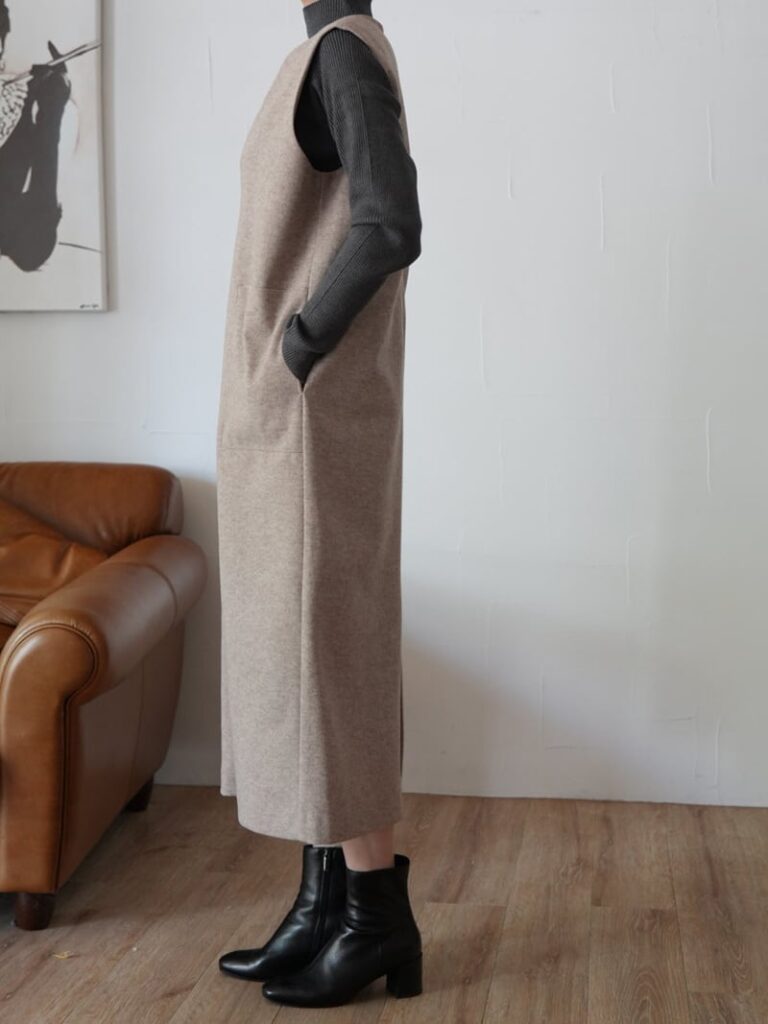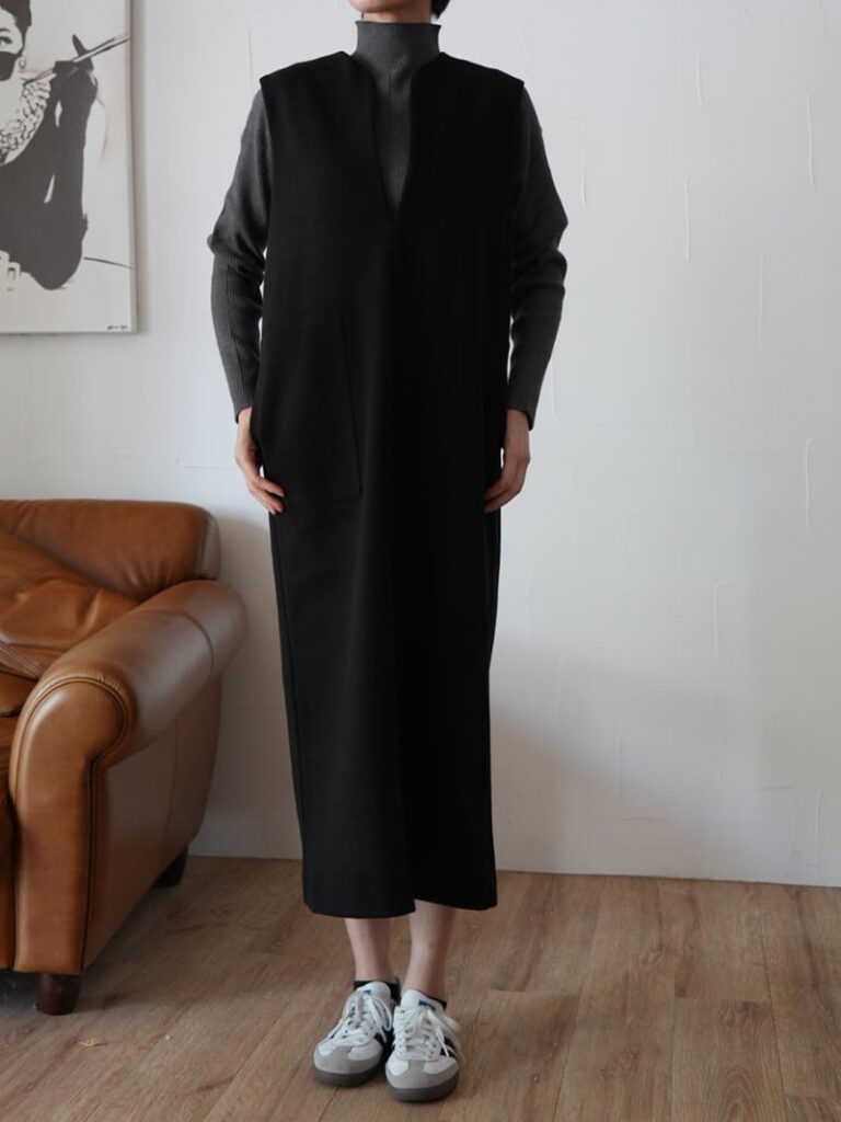 ウールライクのストレッチジャージー生地を使用したジャンパースカートです。